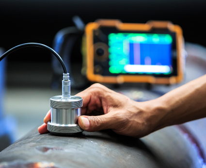 Inspeção por ultrassom ou o Ensaio Ultrassônico: É uma técnica não destrutiva onde é aplicado principalmente para detecção de falhas em materiais metálicos. São utilizados em inspeção de recepção de matérias primas, em inspeção durante o processo de materiais em construção e para as inspeções em serviço.